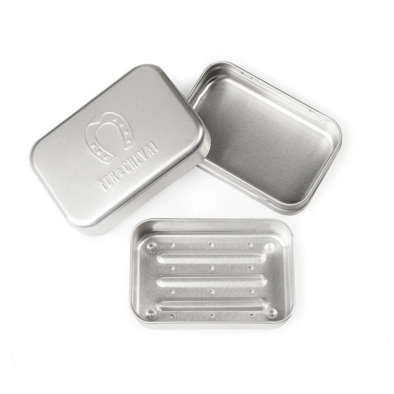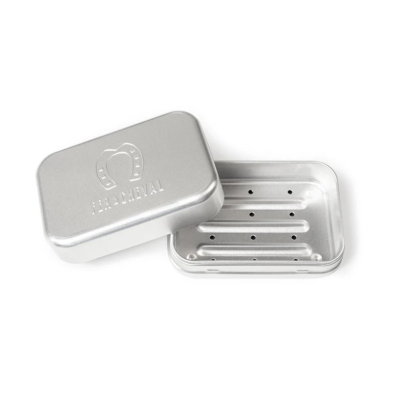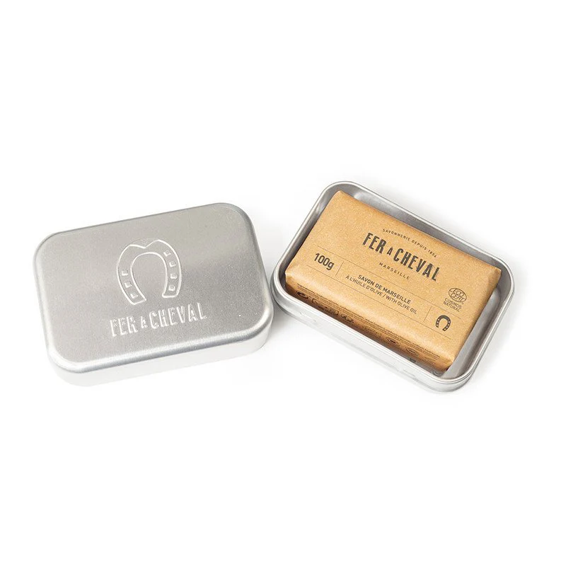 2-en-1 la boîte à Savon Fer à Cheval fera office de porte-savon et elle facilitera le transport de vos Savons de Marseille 100g et Savons Doux Parfumés 125g. L’égouttoir présent au fond de la boîte vous permettra d’évacuer le trop plein d’eau et donc d’éviter au savon de coller.