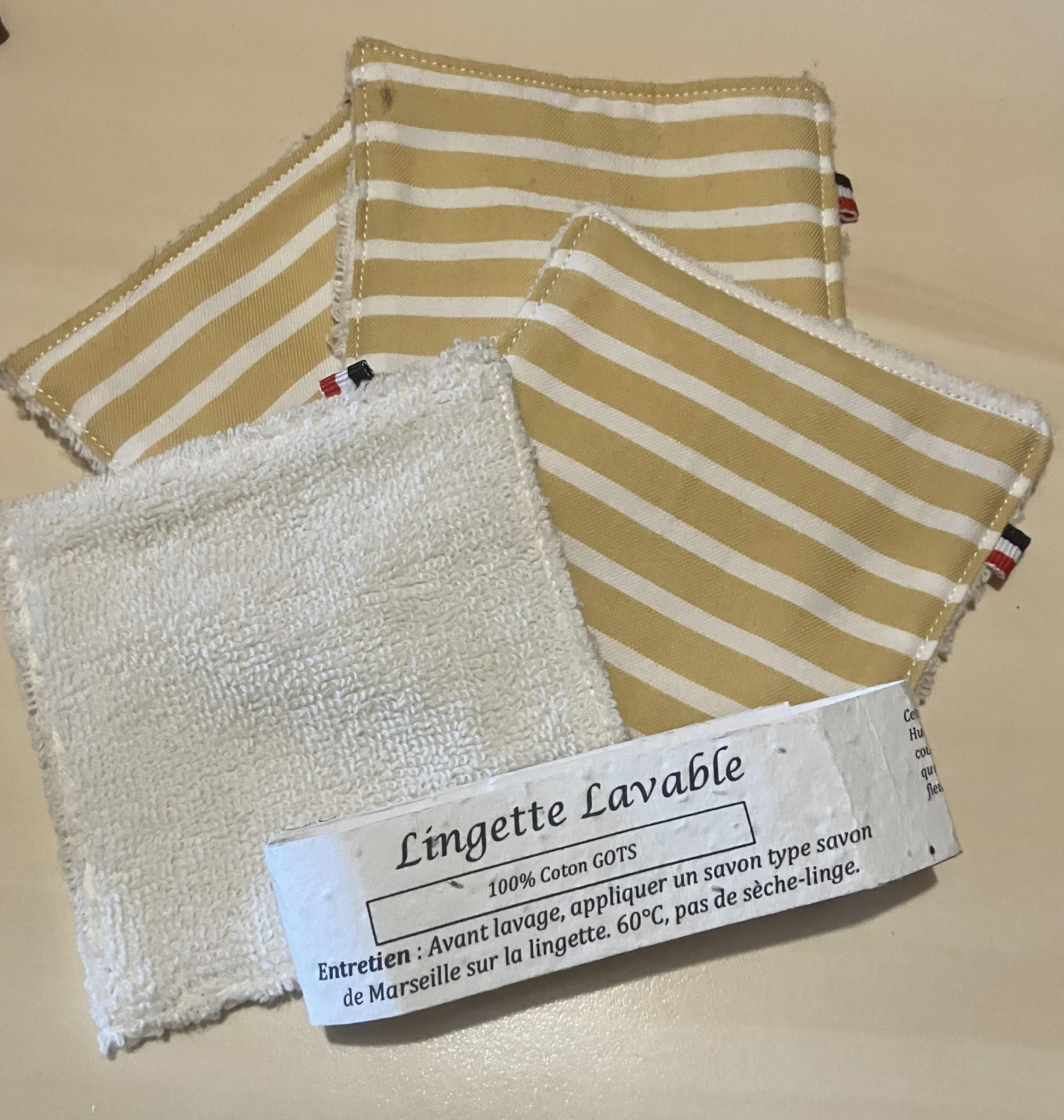 Lot de 4 Lingettes lavables en coton et éponge de coton bio