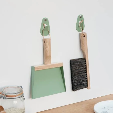 La Pelle à poussière Clynk se range facilement sur les crochets muraux Clynk grâce à son lien en cuir et s’associe parfaitement à la Balayette Clynk.